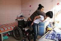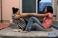 另一项必做的“功课”是帮助养母做康复训练。去年,临汾一家医院听闻孟佩杰感人故事后,将刘芳英接入医院免费治疗。为配合医院治疗,孟佩杰每天要帮养母做200个仰卧起坐、拉腿240次、捏腿三十分钟……长年瘫痪在床的养母排便困难时,孟佩杰就用手指帮她一点点地抠出来。
