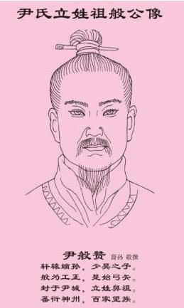 相传,远古帝王少昊金天氏有子名般,担任工正官(掌管百工技巧),被封于尹城(今山西隰县东北)。后来,殷的子孙便以封邑名称为姓氏,姓尹。