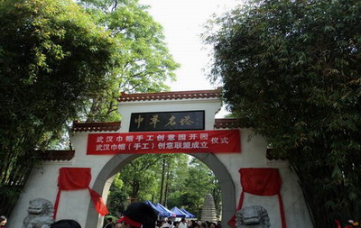 今日上午十时,武汉汉口解放公园中华名塔园内热闹喜庆,武汉市妇联和其它有关部门负责人前来塔园为武汉巾帼手工创意园开园暨武汉巾帼(手工)创意联盟成立举行揭牌仪式。