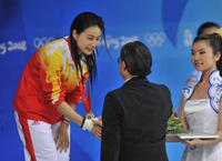霍震霆为郭晶晶颁奖,除了亲自为她戴上金牌之外,没有过多的交流,而倒是现场的观众,用雷鸣般的掌声来烘托出一个小高潮,想必,经历过无数次金牌洗礼的郭晶晶,这一次,内心感受也是不同寻常吧。