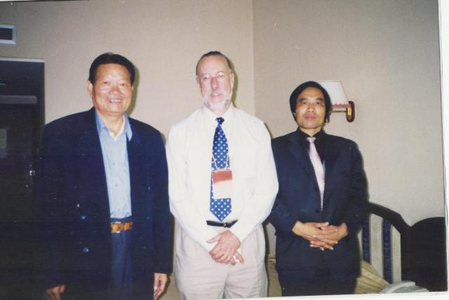 2002年9月26日,吉春(左)与美国倪豪士(中)、孙建权(右)在咸阳