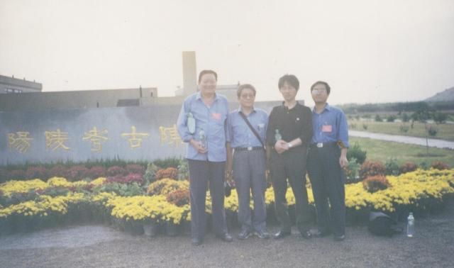 2000年9月19日,吉春(左一)在汉阳陵与日本爱媛大学教授藤田胜久