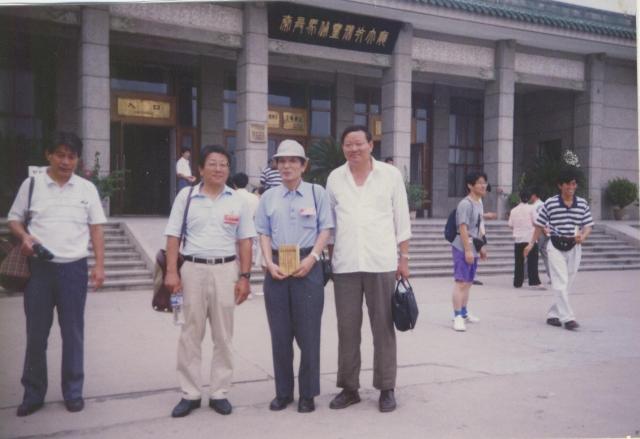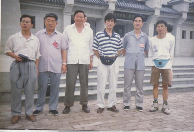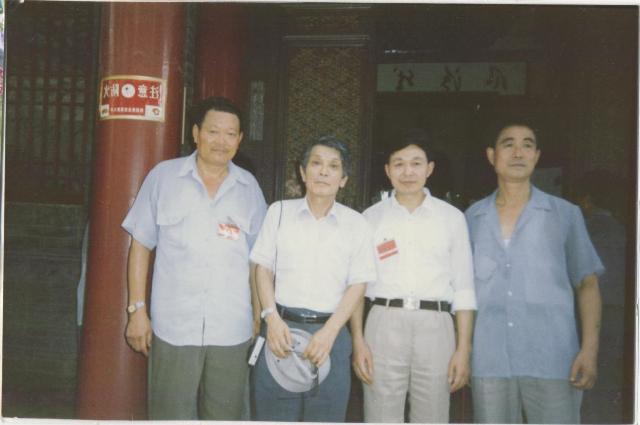 1995年8月,吉春(左一)、张天恩(右一)陪日本名古屋大学今鹰真(左二)、南京师大赵教授(右二)参观司马迁祠