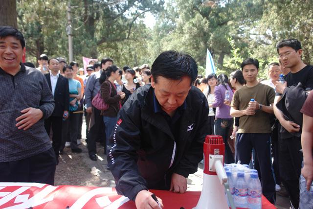 2000年9月20日,吉春(左二)在西安东晋桃园与日本群马县总干事小泽贤二(中)、可永雪(左三)、张新科(右三)、许允贤(右二)、刘宏伟(右一)等合影