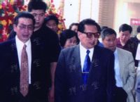 原中共中央政治局常委全国人大委员长乔石与刘豒钟在中国美术馆观看画展时合影
