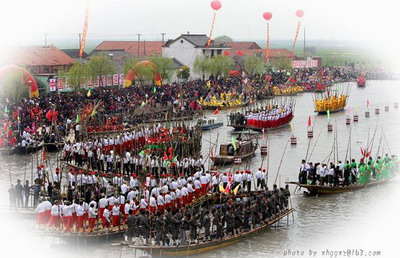 4月4日,茅山镇张灯结彩,家家户户插柳画符,洋溢着浓浓的民俗风情。街道上人如潮涌,热闹非凡,一年一度的“会船节”将在此举行。会船节其实是乡镇农民的“水上庙会”, 近年由于乡贤后兆明先生发愿重修、规模宏大的景德禅寺开光且香火很旺,茅山庙会更形隆重。这一天,十里八乡的商家和小贩们也赶往茅山镇,为节日增加了社交性和商业性。据称,此次会船节共吸引全国各地百余名摄影爱好者和逾5万名观摩群众。